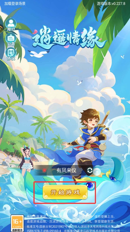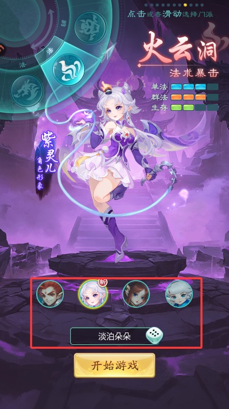 1、启动游戏后首先选择服务区并点击开始游戏,即可开启这段古风仙侠之旅。