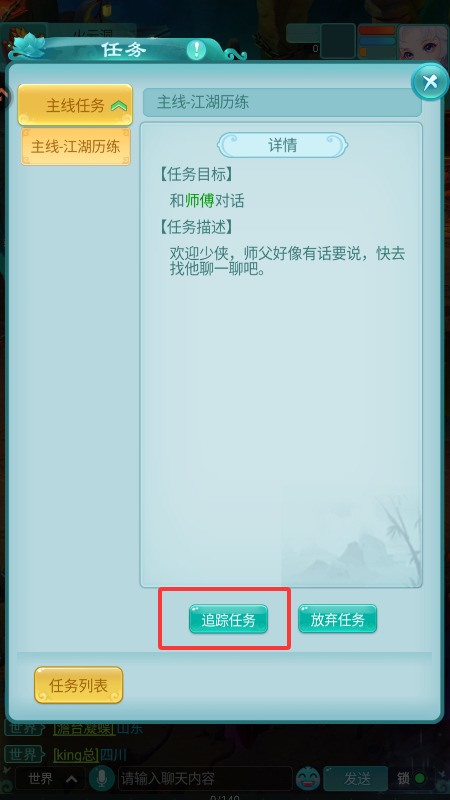 4、选择具体任务后点击自动寻路功能,角色将智能前往目标地点完成任务。
