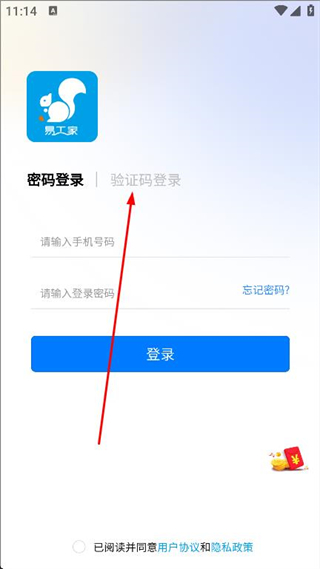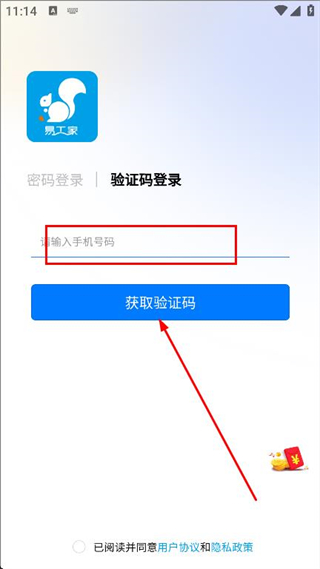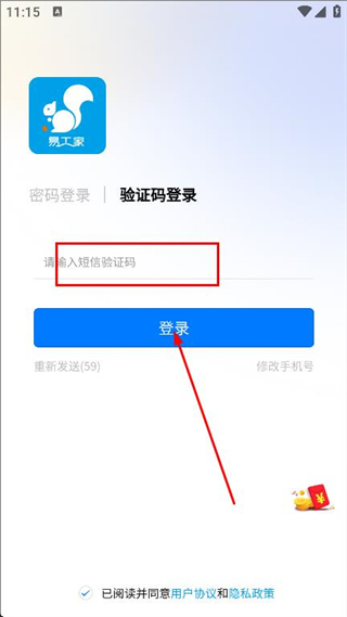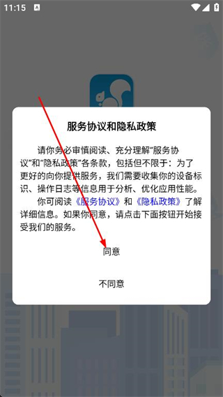1、打开易工家,在弹出的隐私政策界面点击同意。