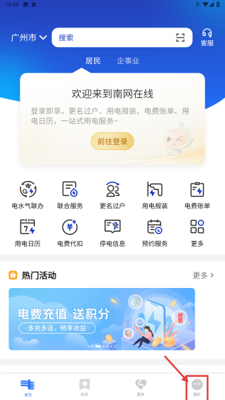 1、打开南网在线应用,点击底部我的选项,进入个人中心页面。