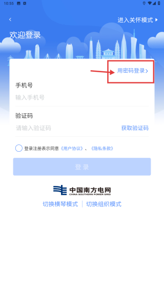 4、输入手机号、验证码和密码,勾选协议后点击登录按钮,完成账号登录。