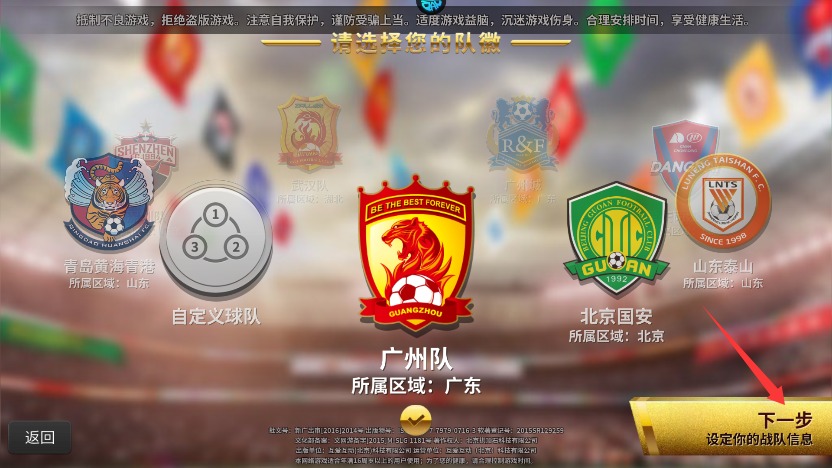 2、从真实中超俱乐部名单中选择心仪球队,或创建自定义队伍参与联赛竞争体系。