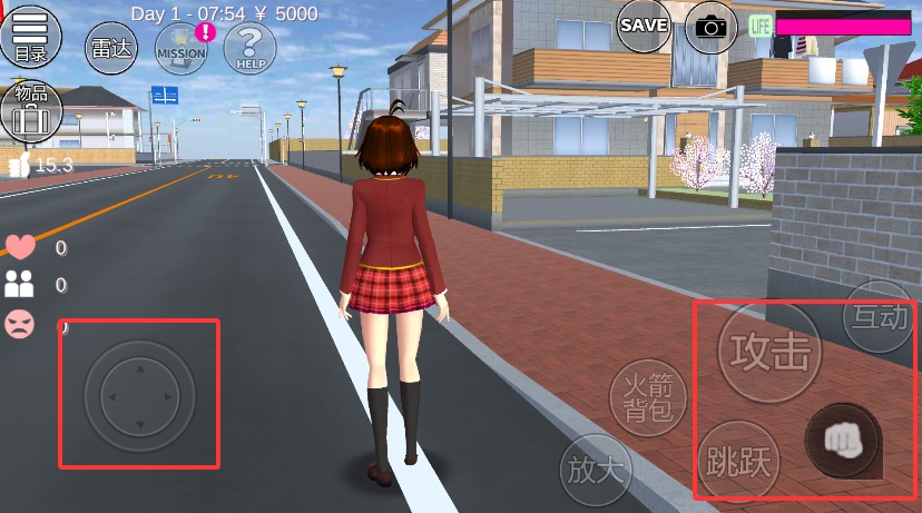 2、通过左侧虚拟摇杆控制角色移动方向,右侧按键区实现攻击、跳跃及互动功能。