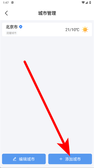 2、在城市管理页面,点击+添加城市。