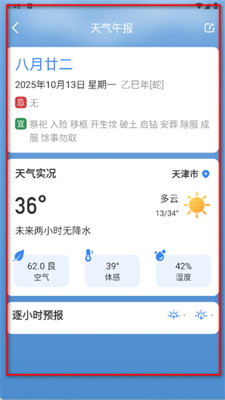 4、查看天津市的天气午报等天气信息。
