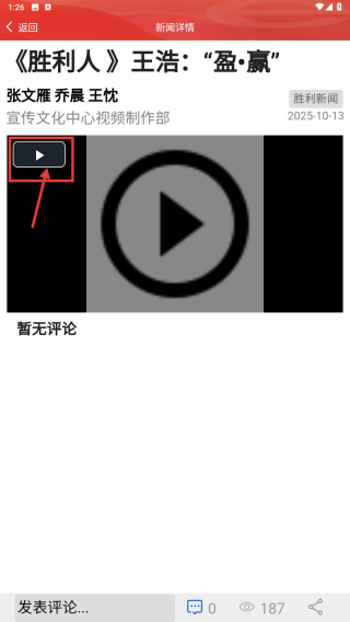 3、在新闻详情页,点击视频播放按钮,观看新闻视频内容。