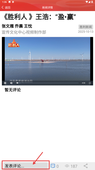 4、在页面底部,点击发表评论输入框,可输入评论参与互动。