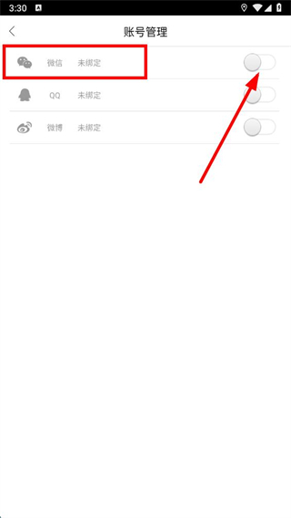 4、在账号管理页面,找到微信绑定选项,点击右侧的开关按钮,按照提示完成微信绑定操作。