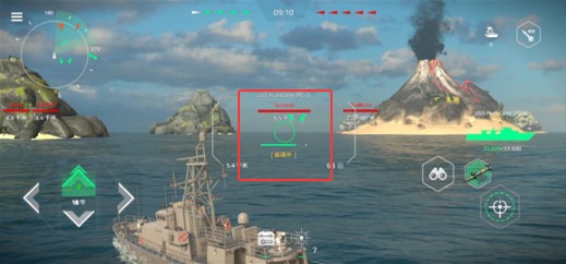 3、通过左手在触屏上滑动来控制舰船航行方向,右手点击火炮按键对锁定目标实施精准打击。