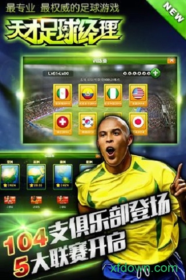 《天才足球经理》是一款目前最专业、最权威的手机端足球模拟策略游戏。游戏中包含正规的西班牙、英格兰、德国、意大利、法国欧洲五大联赛,共104支足球俱乐部,4320名世界顶级联赛选手全部百分百真实呈现。