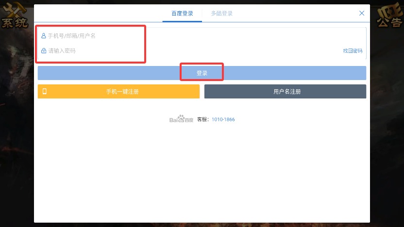 4、返回登录界面输入已注册的手机号、邮箱或用户名及对应密码,验证通过即可进入游戏。