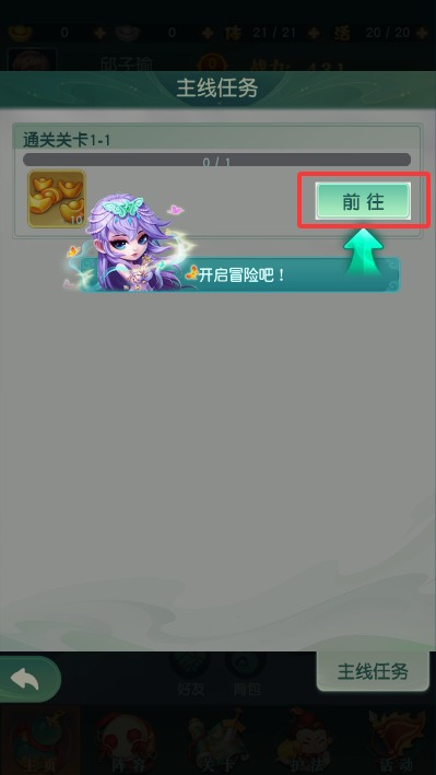 1、启动游戏后点击任务列表,查看当前可接取的主线剧情与日常活动内容。