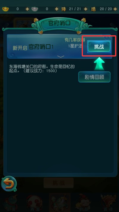 4、确认挑战目标后点击战斗按钮,即可进入回合制对战界面部署护法阵容。