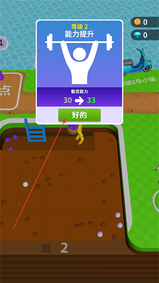 4、升级到第2层后,点击好的确认能力提升,继续挖掘。