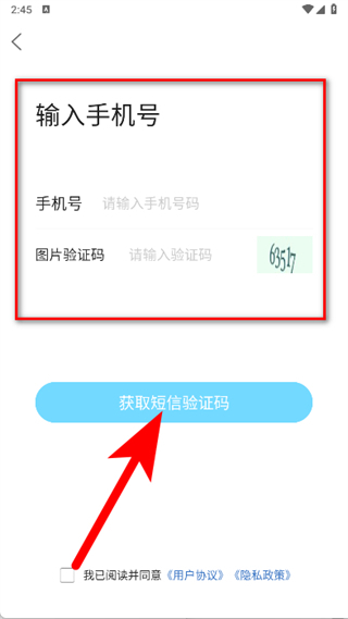4、输入手机号和图片验证码,勾选后,点击获取短信验证码,完成注册。