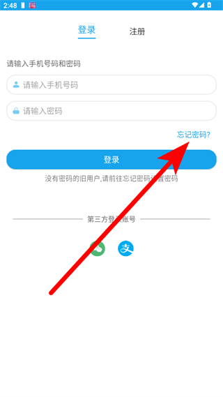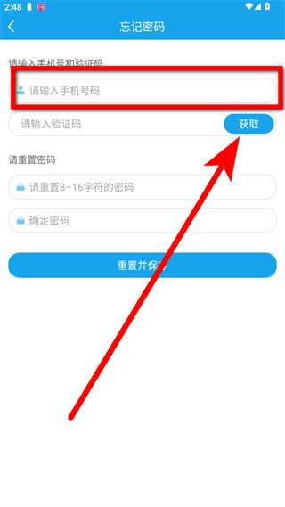 2、进入忘记密码页面,输入手机号码后,点击获取验证码。