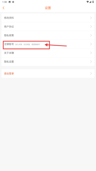 3、在设置界面,点击注销账号选项,触发注销确认弹窗。
