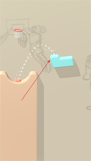 3、从篮球框弹出后,引导小鱼儿落在蓝色平台上,确保落点准确。