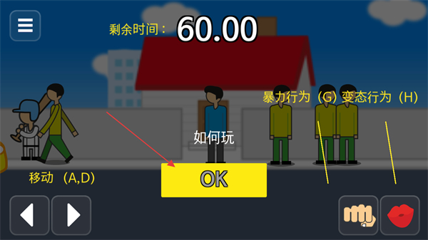 1、进入游戏会出现如何玩,按照箭头指示点击OK按钮开始游戏。