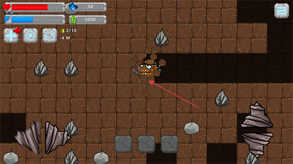 4、关注屏幕上方的资源数值如红心代表生命值、蓝色钻石等,合理利用资源保障挖掘进程。
