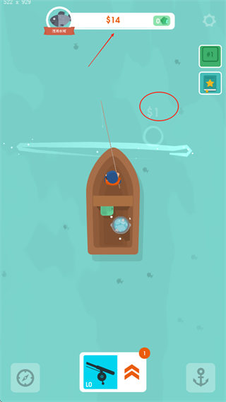 鱼上钩快打点击屏幕右方来进行拉杆操作!
