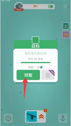 3、每次完成捕捞任务后记得点击领取按钮,将暂存区的捕获成果转化为实际金币收入。