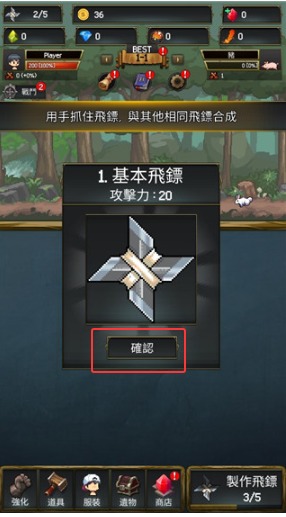 而且我们可以通过收集飞镖,打造飞镖来让我们的忍者更强,游戏中加入了合成的元素