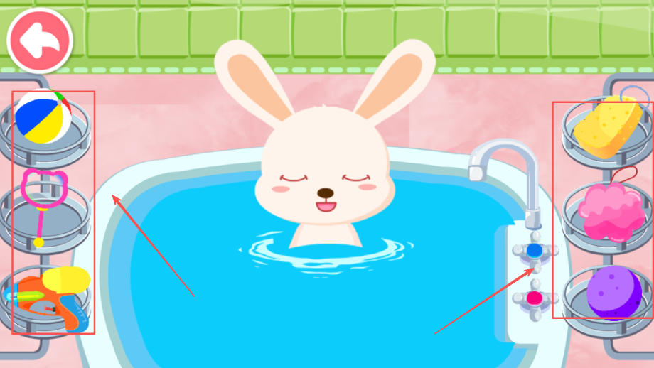 1、帮助小动物调节水温,学习冷热水的正确搭配方法,培养安全意识,掌握生活常识,包含温度感知训练。
