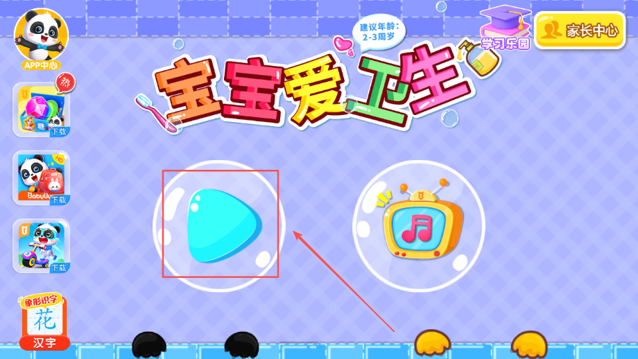 1、刷牙环节教导正确刷牙姿势,通过消灭蛀虫游戏让宝宝认识口腔卫生重要性,培养早晚刷牙习惯,包含牙具认知内容。