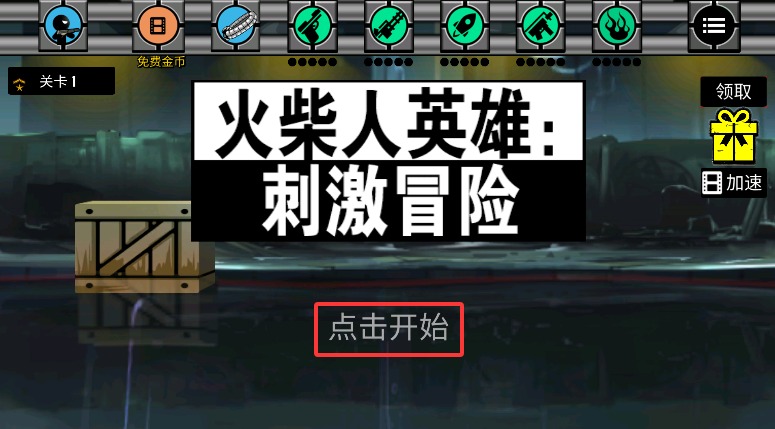 1、启动游戏后点击开始按钮,即可进入这款火柴人主题的横版动作冒险世界。