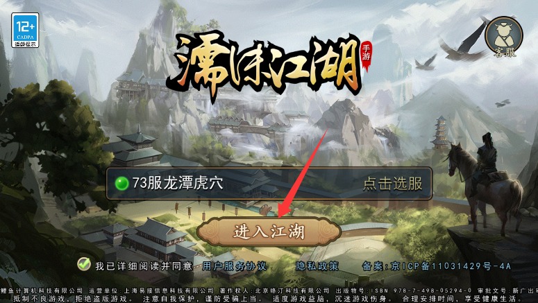 1、启动游戏后选择合适的服务器区服,点击进入江湖开启这段武侠冒险之旅。
