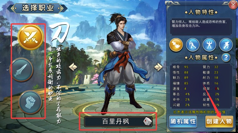 如果人物属性在臂力方面比较突出的话就选择刀主或者剑主,天赋搭配提升自身3%攻击的臂力惊人最好。