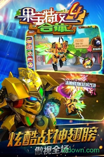 果宝特攻4合体九游版是一款根据国漫动画改编的动作手游,游戏场景色彩童趣,人物q萌,让人一瞬间回到了童年。游戏中所有的英雄都是可以变身的,高度还原了动漫中的场景,每个角色都设计有自己独特的机甲,合体后技能酷炫全场,这个星球以后由你守护!还原来旋风手游网下载!