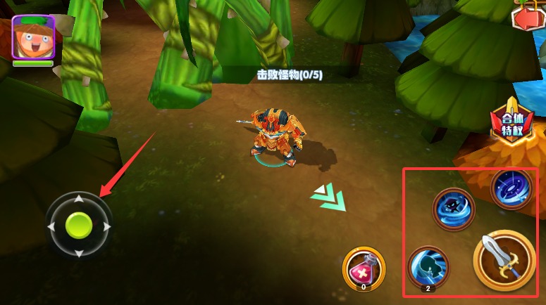 4、通过左侧虚拟摇杆控制角色移动,右侧技能按键发动特色攻击与合体技。