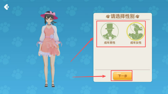1、打开游戏进入主界面,根据个人偏好选择喜欢的猫咪性别开始养成。