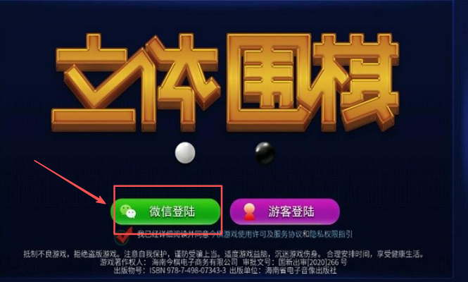 1、选择登录模式开始游戏,黑棋先行白棋后手,双方轮流落子于棋盘交叉点。