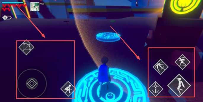 2、观察水面蓝色光块和花纹提示,沿墙壁蓝色横条跳跃攀爬至下一区域。
