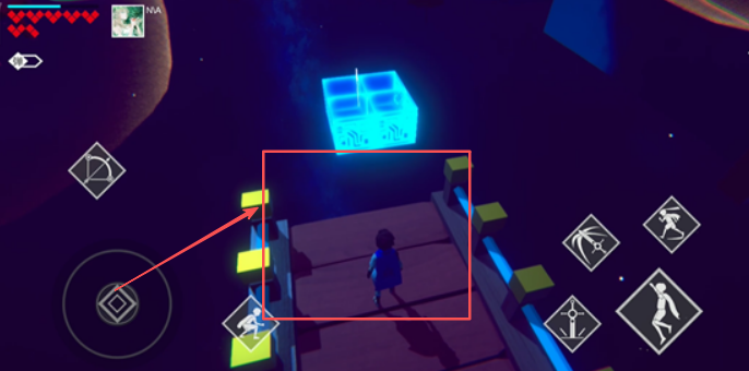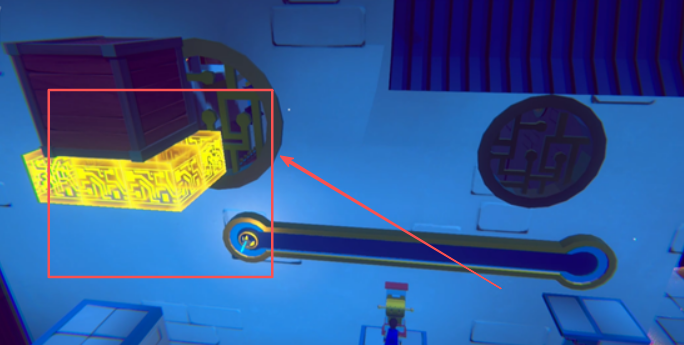 4、趁闪烁灯光熄灭时快速通过黄块,在损坏灯源插光剑后操纵机关完成解谜。