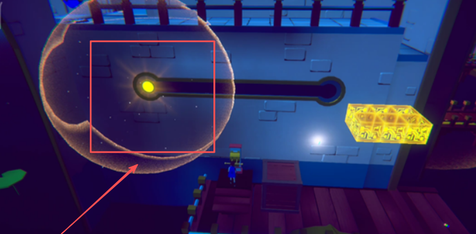 3、启动机关移动光源改变黄块状态,利用落下木块登上黄块抓住墙上扶手。