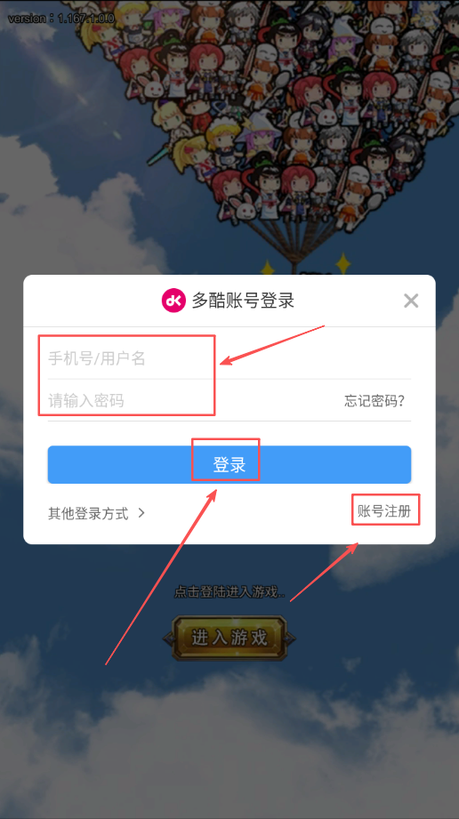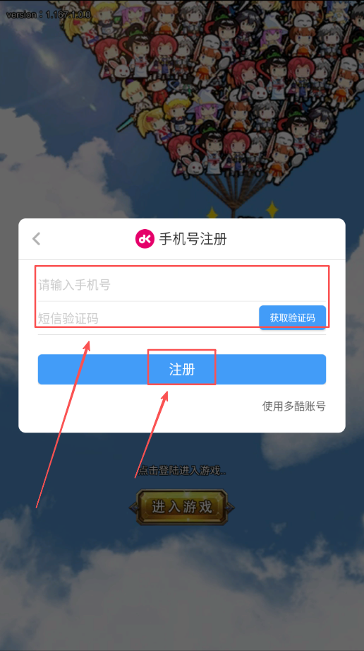 1、进入游戏后点击账号登录选项,选择使用手机号码进行登录或注册。