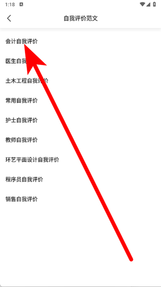1、打开简历快制作,在模板页面,点击自我评价范文。