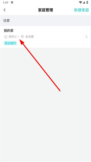 3、在家庭管理页面,点击我的家选项,进入家庭详情页面。