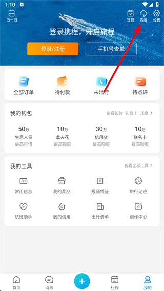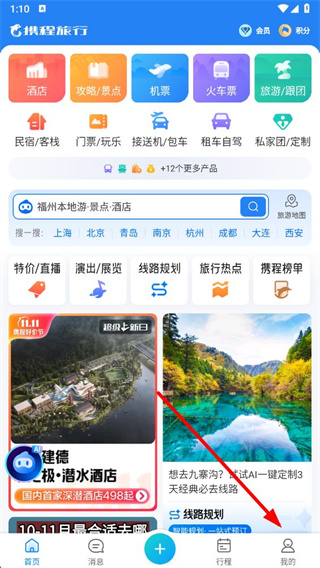 1、打开携程旅行app,点击底部导航栏中的我的选项。