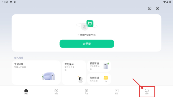 1、打开智能家居类APP,点击底部我的选项,进入个人中心页面。