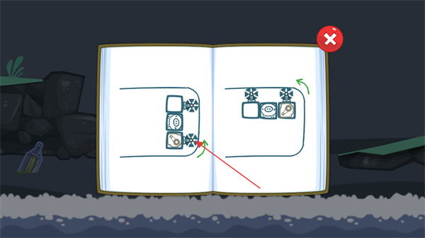 2、打开提示手册,仔细观察图示的道具组合和摆放方式,了解过关思路。