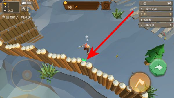2、在对战场景中,操控角色移动,靠近地上的斧头即可拾取,拥有斧头后,点击攻击按钮就能挥砍,遇到其他玩家时,利用斧头攻击、躲避对方攻击,淘汰对手获取积分。