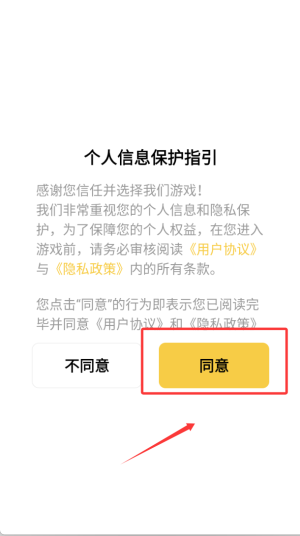 1、阅读并确认用户协议后,点击进入按钮即可启动程序,正式访问游戏主界面开始您的体验。