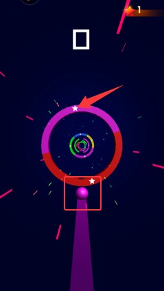 游戏的玩法在下落的时候四周会有不同颜色的弧形,你下降的求一定要落到和自己颜色相同的弧形上;