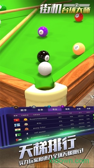 《街机台球大师》是全球首款真人实时对战桌球手游,完美还原现实8球玩法,简单流行的操作方式,绚丽的动画特效,配以真实的物理参数,精准的进球,激动人心的赛事,究竟谁才是冠军?让我们拭目以待。