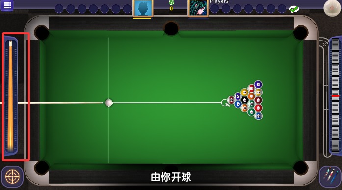 4、确定最佳位置后长按左侧球杆向下拖动蓄力,松开手指即可完成击球操作。